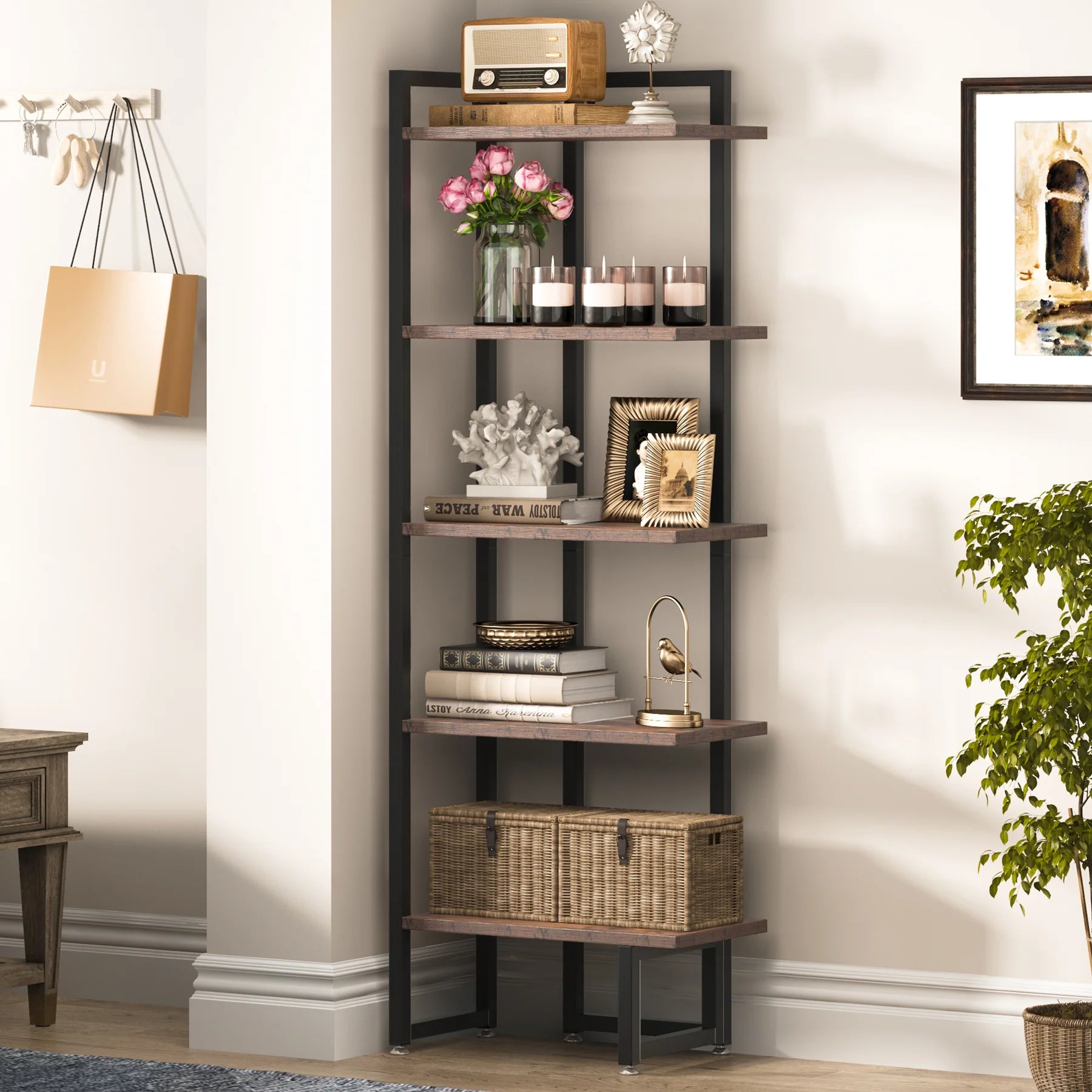 • This freestanding 5-tier corner bookshelf offers multifunctional storage space for books, photos, and home décor items.
