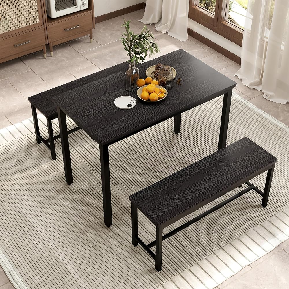 • The two included benches are designed to slide neatly under the table when not in use, saving valuable space in your home. This clever feature makes the dining table set for 4 ideal for small spaces like apartments or cozy dining areas, where maximizing floor space is essential.
