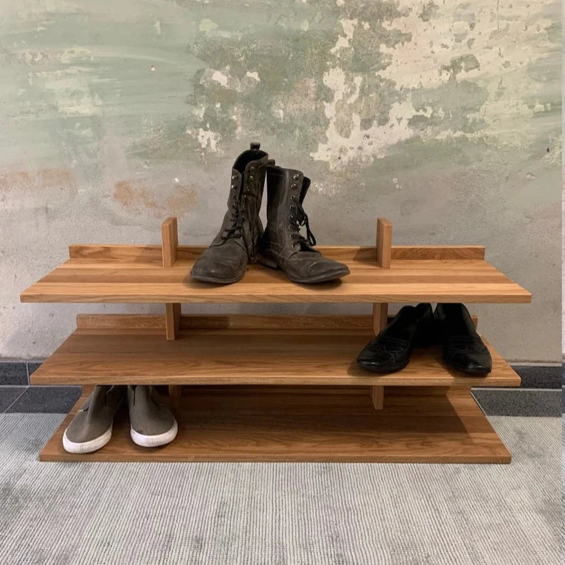 • This minimalist shoe rack combines form and function with a sleek, open-shelving design that brings an air of modern simplicity to your space. Crafted from natural wood, its warm tones and smooth surfaces offer a natural yet contemporary feel. With three tiers of spacious shelves, it provides an organized, stylish way to display your footwear collection while maintaining a clean aesthetic.