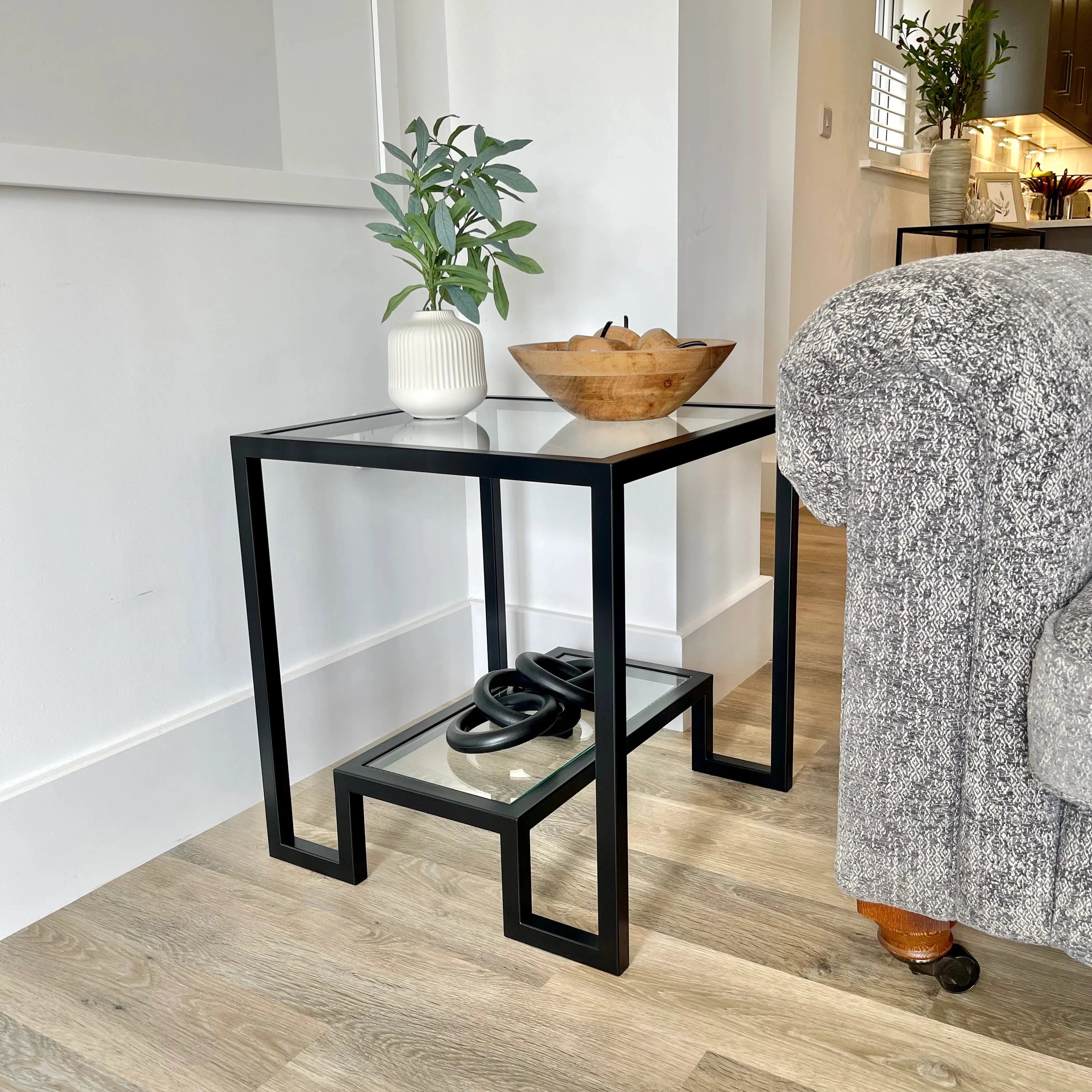 Hudson Glass Table Lounge Living Room Metal Side Table