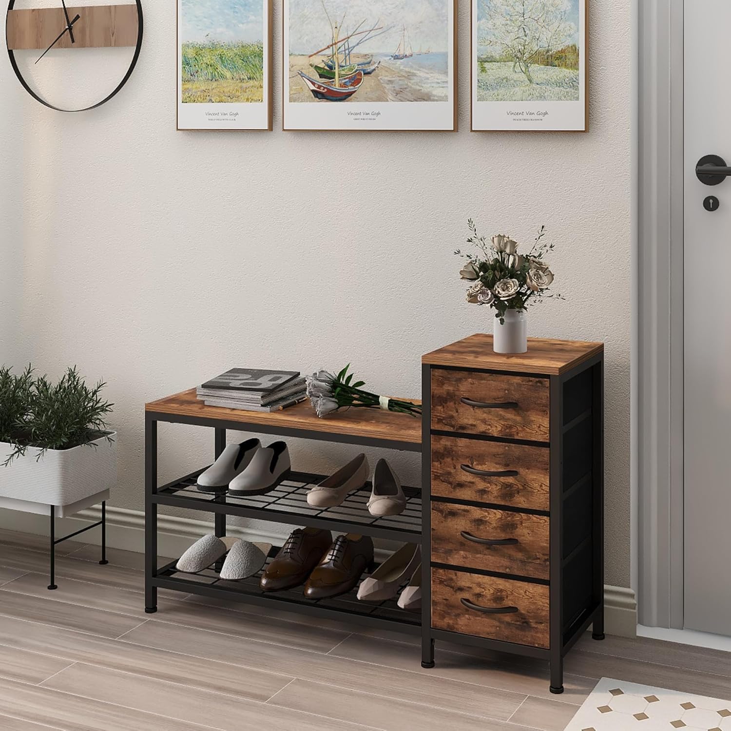 OTICA 3-Tier Drawers Seating Storage Shoe Industrial Entryway Rack