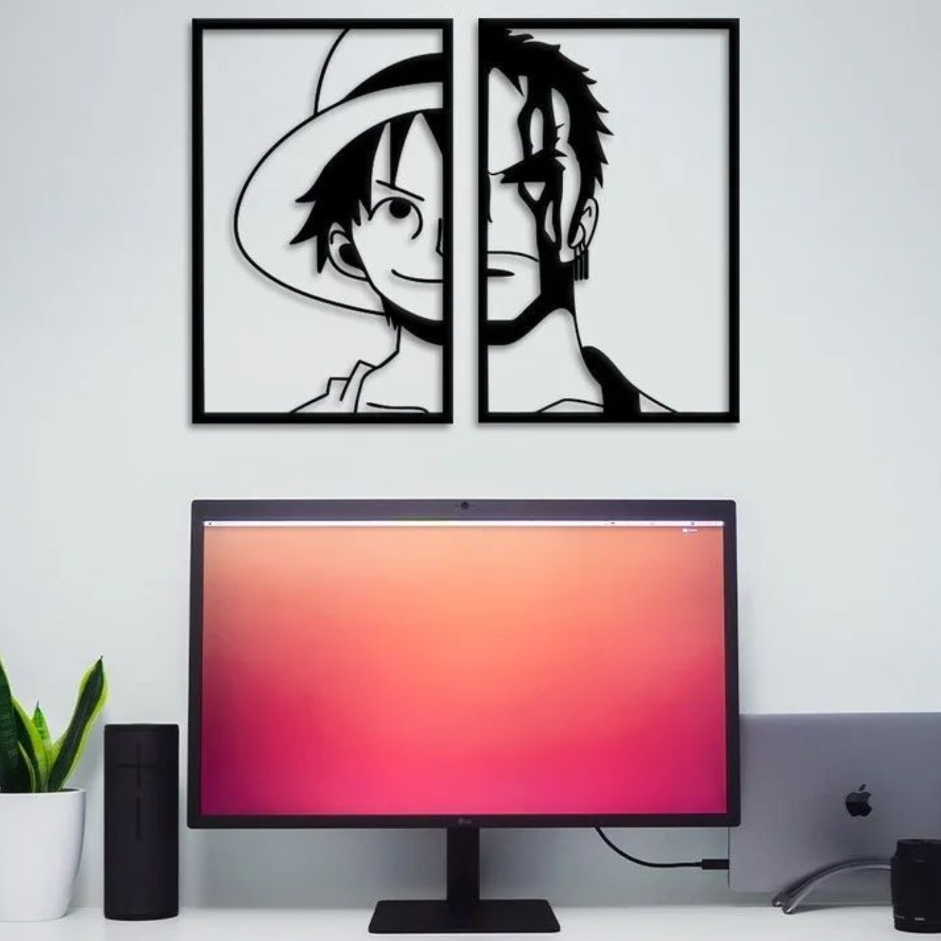 The bold lines and sharp design make this piece an eye-catching addition to any home office, gaming room, or living space, blending modern art with anime inspiration.