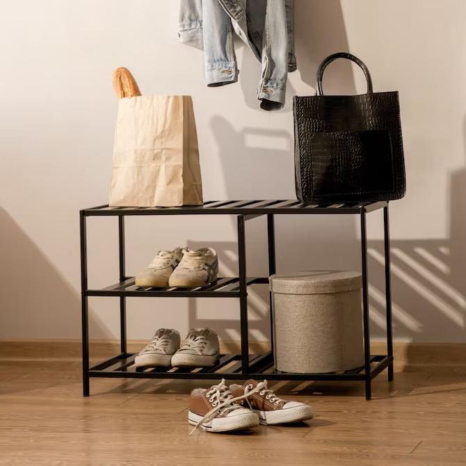 • This shoe rack features a minimalist design, durable construction, and a protective powder coating, enhancing its aesthetic appeal.