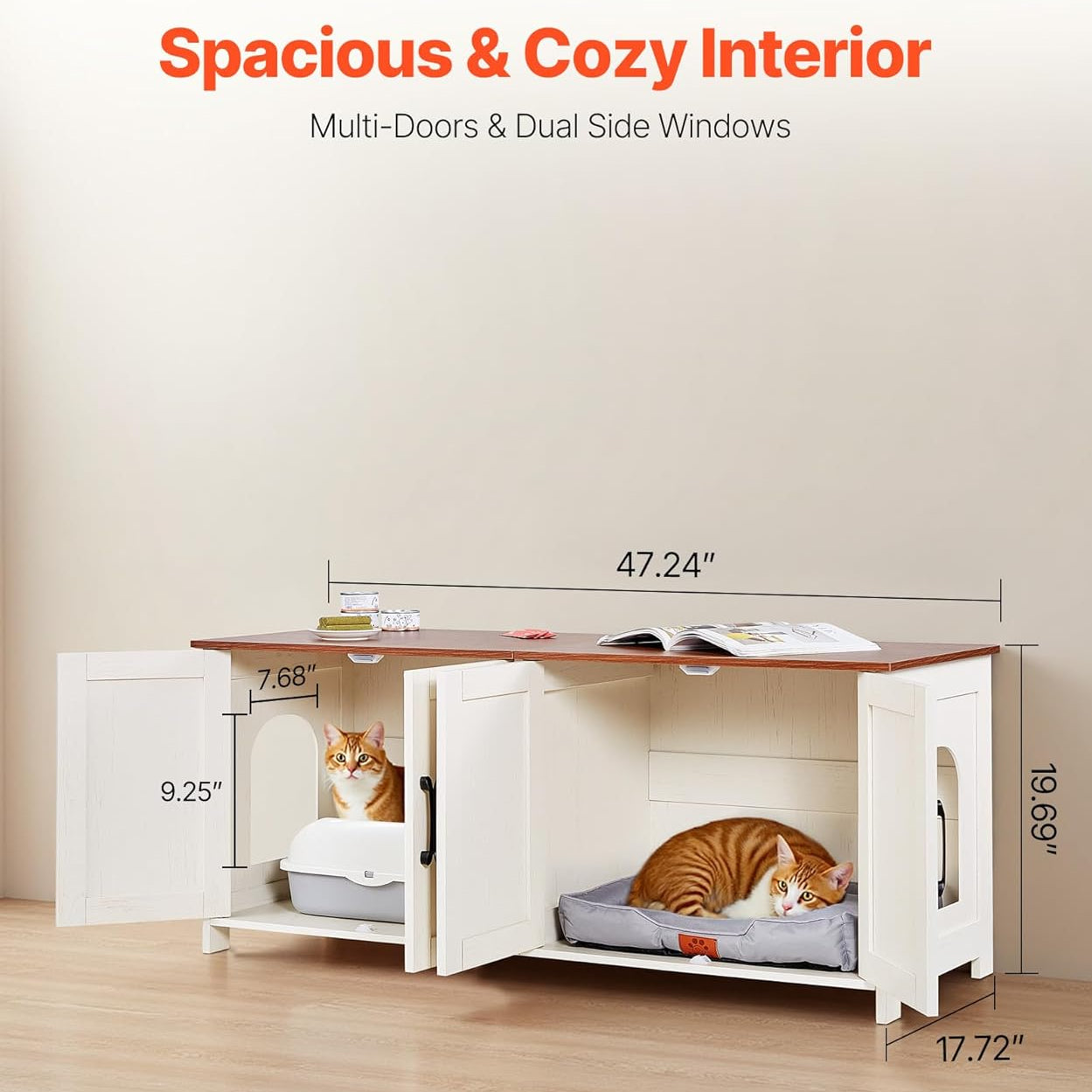 • This hidden litter box enclosure features a segmented panel design for safer transport, reducing the risk of board breakage.