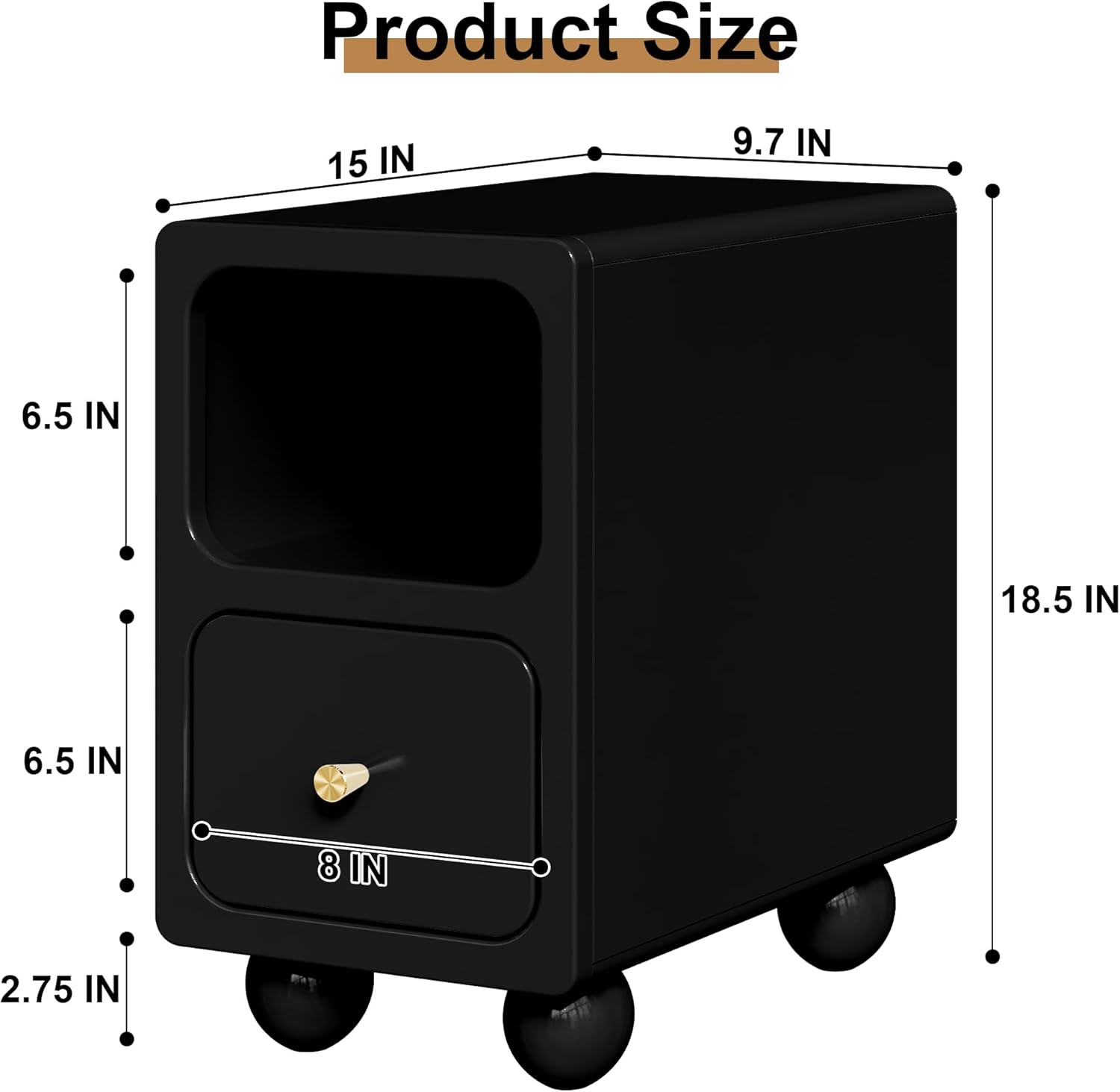 • Measuring 15"W x 9.7"D x 18.5"H, this versatile piece fits perfectly in bedrooms, living rooms, or tight spaces. Crafted from premium MDF and wood with a refined polish finish, it offers durability and a polished aesthetic.