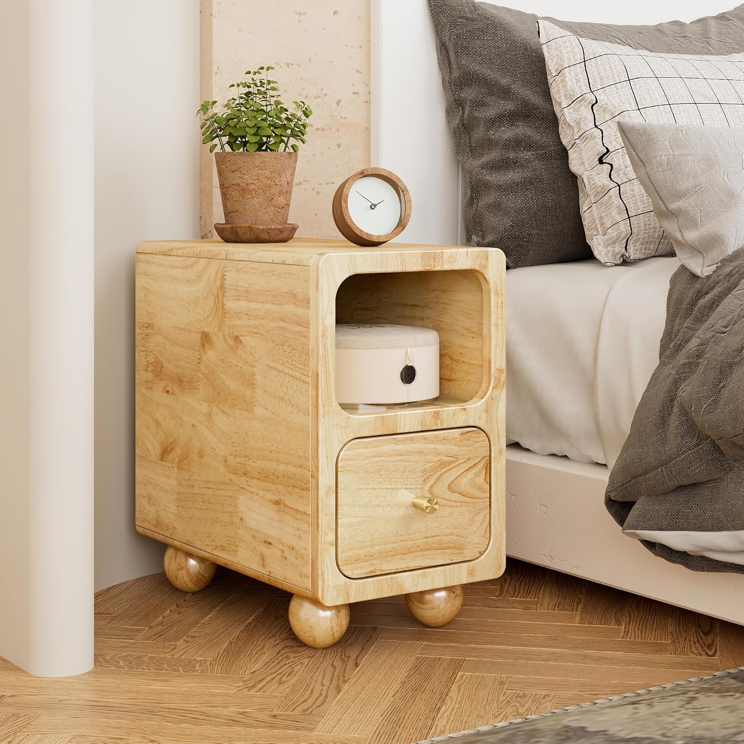 • The Sonara Nightstand Bedside Mini Drawer Side Table combines compact functionality with elegant design.