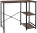 Product Details: Two open storage shelves and a wide desk top. Durable wood and metal construction. Minimal,...
