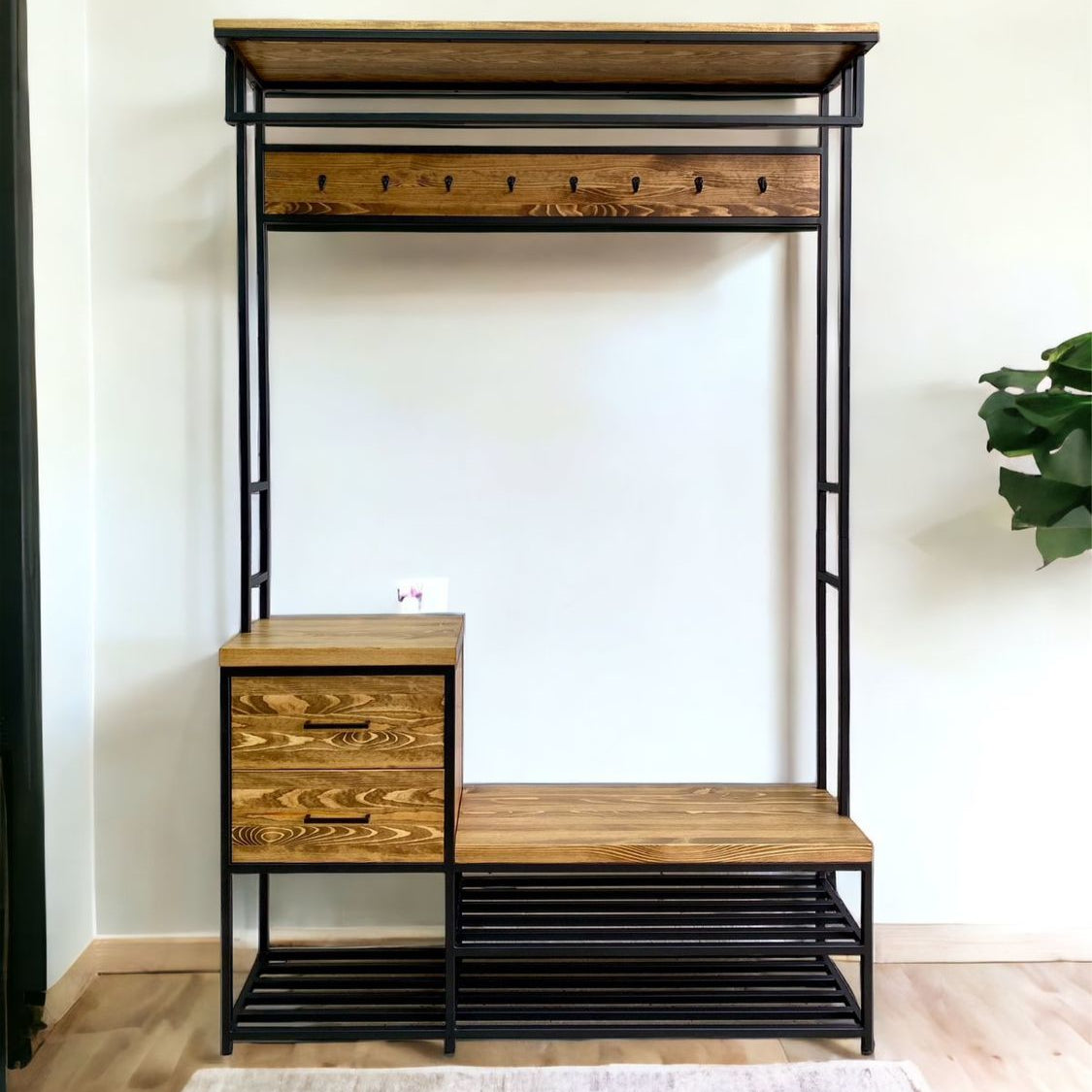 • Forget about tossing them on the nearest couch when walking in the door give your jackets a home in the entryway on this standing coat rack with a bench.